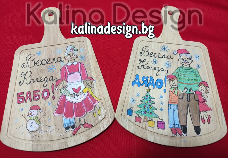 Комплект от 2 броя Ръчно рисувани кухненски дъски с надпис Весела Коледа, БАБО! и Весела Коледа, ДЯДО!